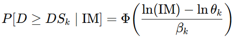 Una curva de fragilidad es una función de distribución acumulada (CDF) que entrega la probabilidad de exceder un estado de daño (EDₖ) dado un nivel de Medida de Intensidad. En Ingeniería, se asume modelo lognormal por su buen ajuste empírico, los valores que toma son no negativos y su forma en “S” es suave y de fácil convolución con PSHA.