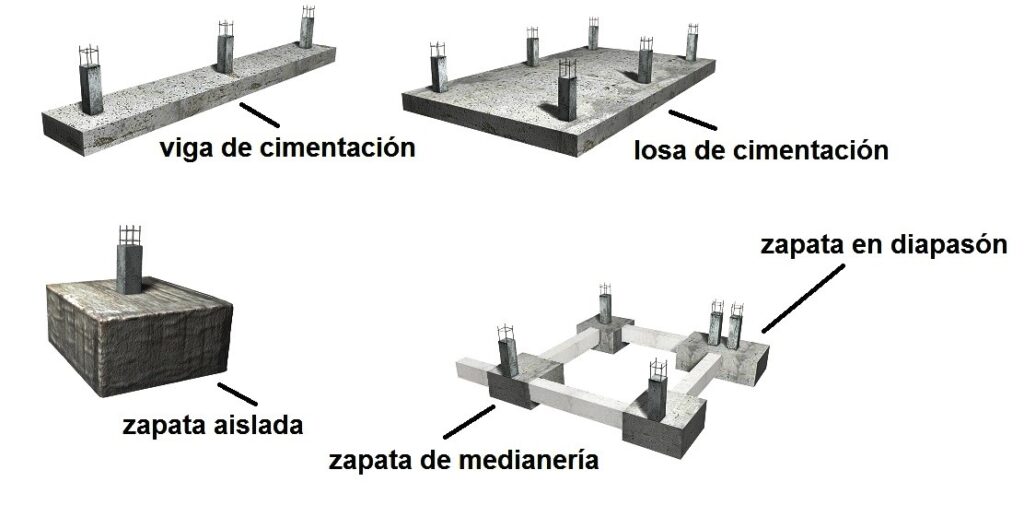 - Cimentaciones superficiales: zapatas, losas o placas rígidas utilizadas para equipos ligeros o suelos firmes.